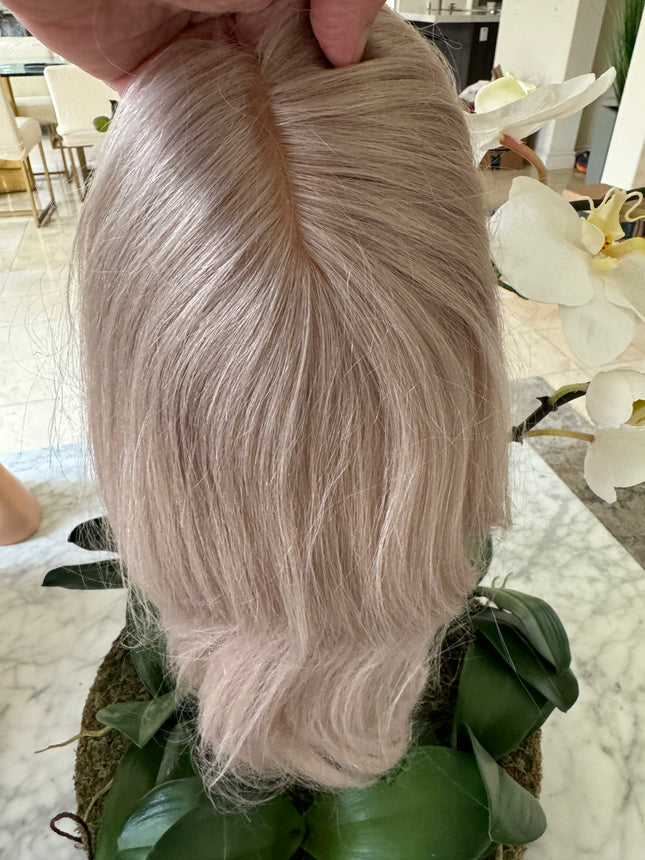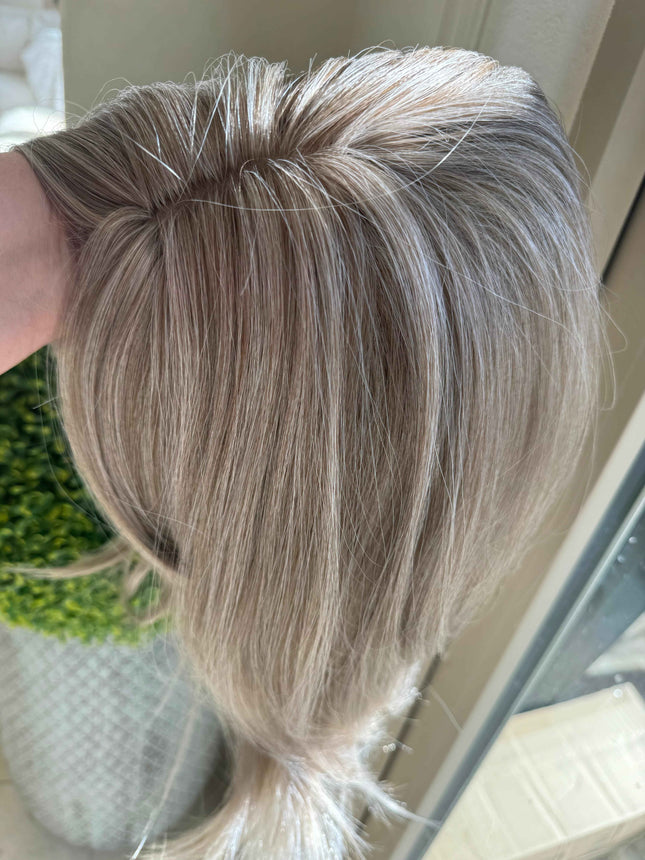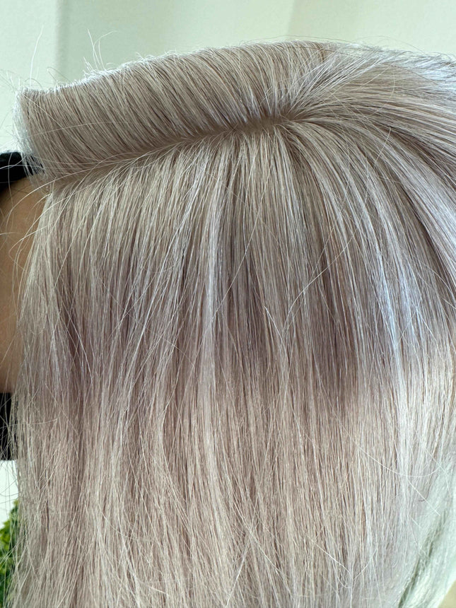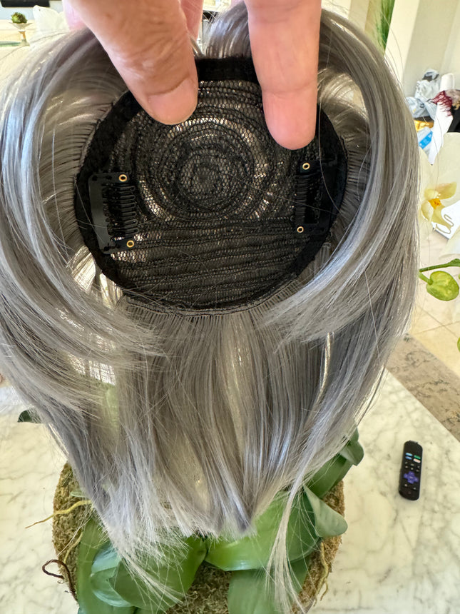 This  silver blonde grey mic 100%human hair topper  Tillstyle hair toppers this grey hair toppers are made of high quality human hair ,this grey hair wiglet or  hair piece for women is an exclusive addition to your hair wardrobe when you are searching for hair toppers near me this grey topper is perfect answer. Till style hair pieces hair pieces and wigs are hair pieces for thinning and work very well as topper for thinning crown this gray hair topper is a solution to thinning crown. Grey human hair topper is especially designed as   human hair hair topper with bangs to cover forehead bald areas. These tillstyle toppers for alopecia are very helpful for people with hair loss . These are available in various lengths and are used as hair toppers for short hair and also  hair toppers for thinning hair High quality human hair base looks like real part Realistic hair volume hair topper Best human hair toppers This Light weight and easy to apply  This clip in hair topper can be used for thinning hair or alopecia or chemotherapy patients This Winglet is great for wedding or partyGrey hair toppers for women with highest quality human act as  real hair these hair winglets are the best A discreet and stylish way to volumize and cover thinning areas, perfect for the modern woman. With a realistic look and feel, you'll never have to worry about your hair again. Instantly style yourself for party or wedding or holiday get together These human hair pieces are great options for beginning to advanced stages of hair or those who want to add volume With its natural look and feel, these hair pieces provide a realistic and affordable hair transformation