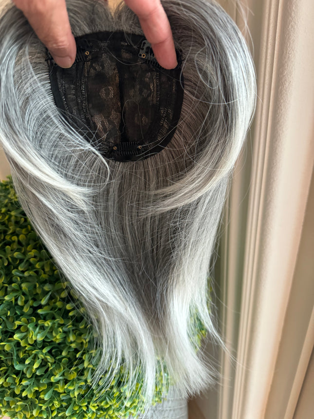 • Tillstyle Toppers for Thinning Crown Mix Grey Salt and Pepper Clip On Human Hair Topper Tillstyle Toppers for Thinning Crown Mix Grey Salt and Pepper Clip On Human Hair Topper