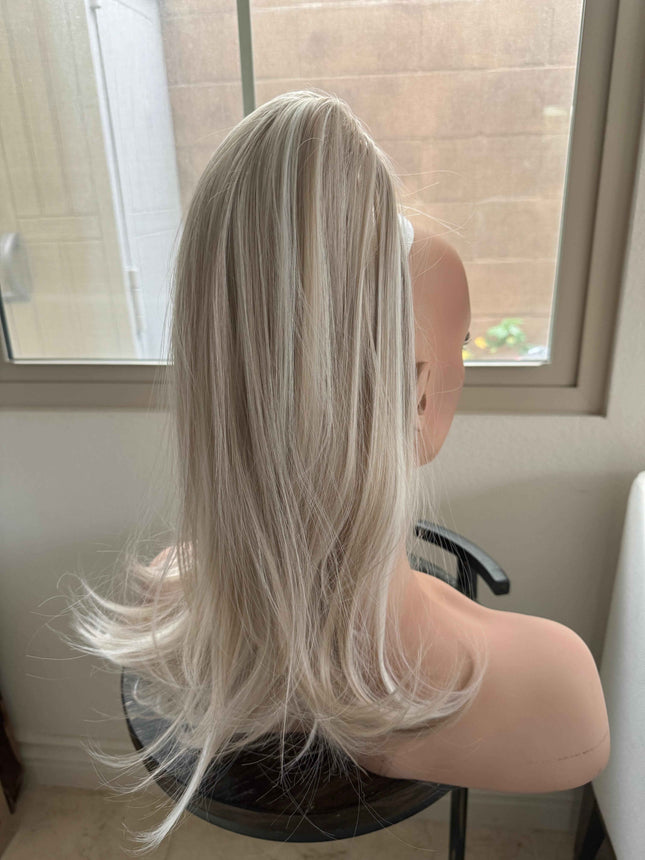 Bleach blonde /white blonde clip in ponytail clip in pony tail 18 inch real   synthetic fibre  natural fluffy and large easy to use clip in hair piecePremium hair clip in pony tail hair extensions creamy ends You do not have to search pony tails near me they are at tillstyle.com  Clip in Ponytail,Clip Claw black ponytail  Extension straight layered 18 inch long ponytail Synthetic Like Real human hair fluffy does not tangle easy to use hair pieces Tillstyle layered thick ponytail tail 14inch   loose body wave pony tail hair piece High quality synthetic hair looks real Has a claw clip to easily put on your hair. Hair style for women in minutes Can be used for thinning crown and thinning hair. Boosts self confidence with a chic hairstyle. This tousled updo is light weight and comfortable. It is your hair salon at home.