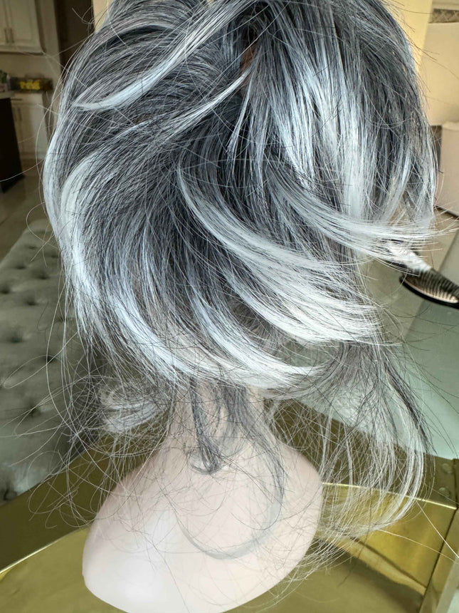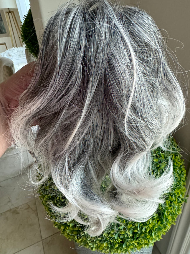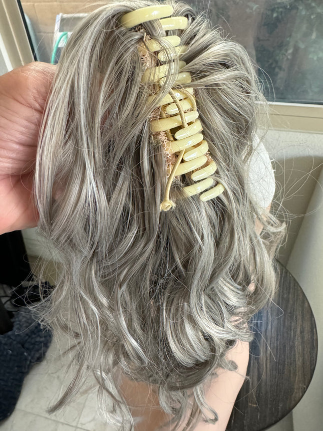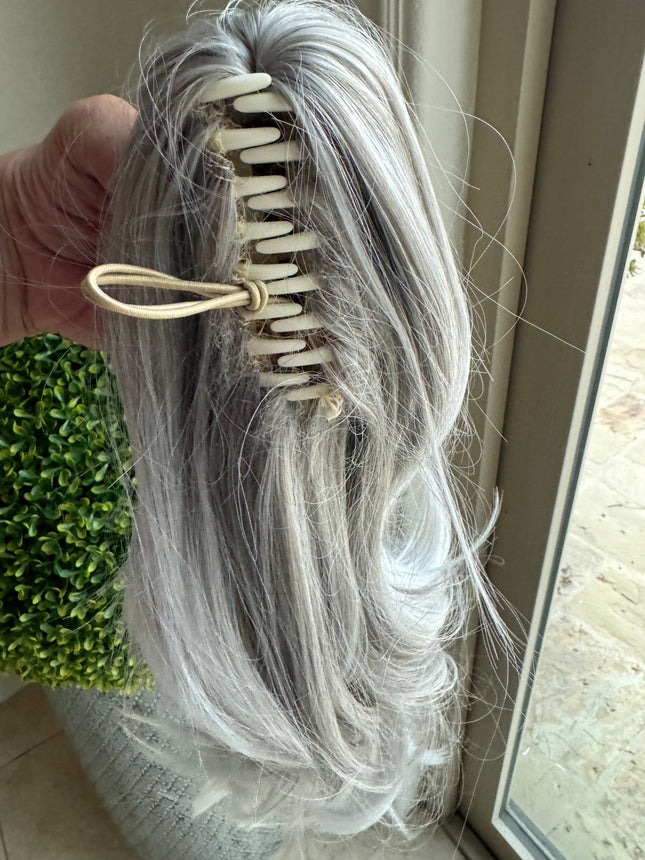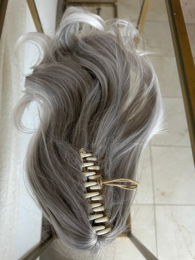 • Last stock! Tillstyle  medium grey curly claw clip ponytail white ends Tillstyle  medium grey curly claw clip ponytail white ends
