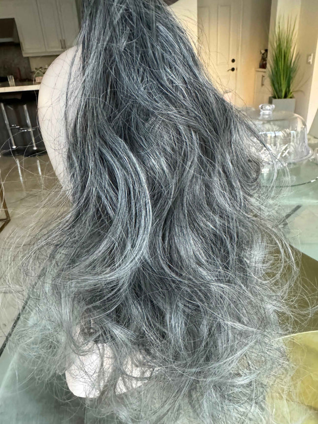 • Tillstyle  grey salt and pepper clip in ponytail clip in pony tail Tillstyle  grey salt and pepper clip in ponytail clip in pony tail
