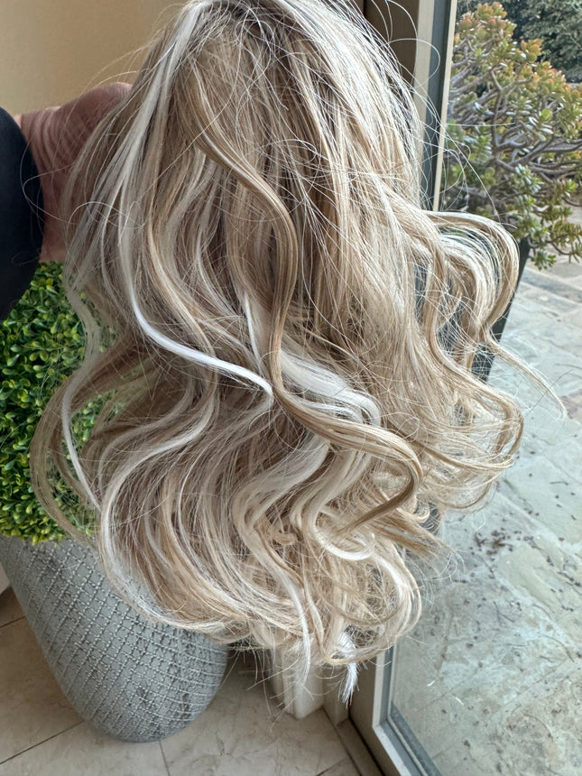 Tillstyle light blonde with ombre highlights clip in ponytail clip in pony tail 22 inch real hair like synthetic fibre  natural fluffy and large easy to use clip in hair piecePremium hair clip in pony tail hair extensions creamy ends You do not have to search pony tails near me they are at tillstyle.com  Clip in Ponytail,Clip Claw bleach blonde ponytail  Extension wavy  22inch long ponytail Synthetic Like Real human hair fluffy does not tangle easyto use hair pieces Tillstyle large blonde mix ombre mix ash blonde pony tail 22inch loose body wave pony tail hair piece High quality synthetic hair looks real Has a claw clip to easily put on your hair. Hair style for women in minutes Can be used for thinning crown and thinning hair. Boosts self confidence with a chic hairstyle. This tousled updo is light weight and comfortable. It is your hair salon at home.