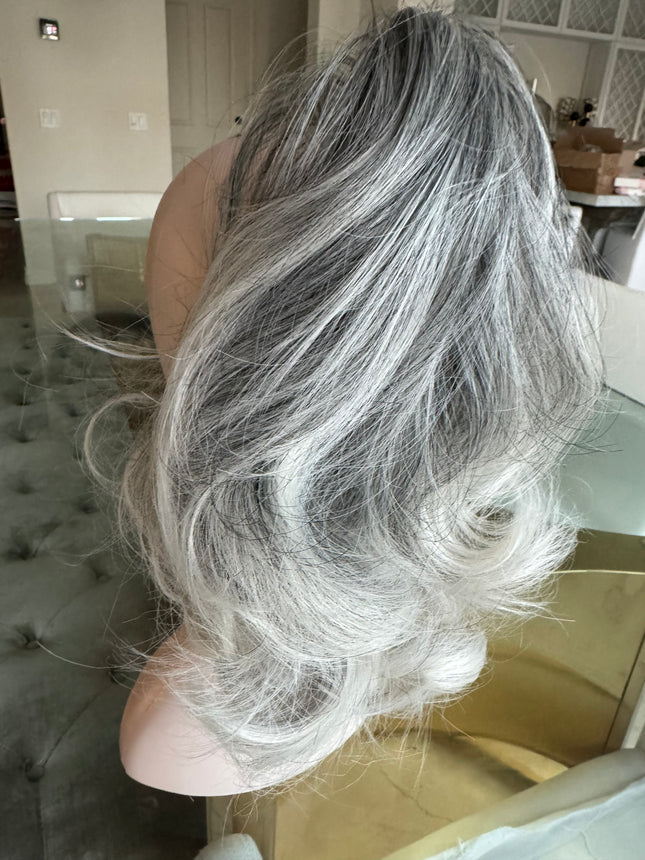 Tillstyle grey salt and pepper clip in ponytail clip in pony tail with creamy ends