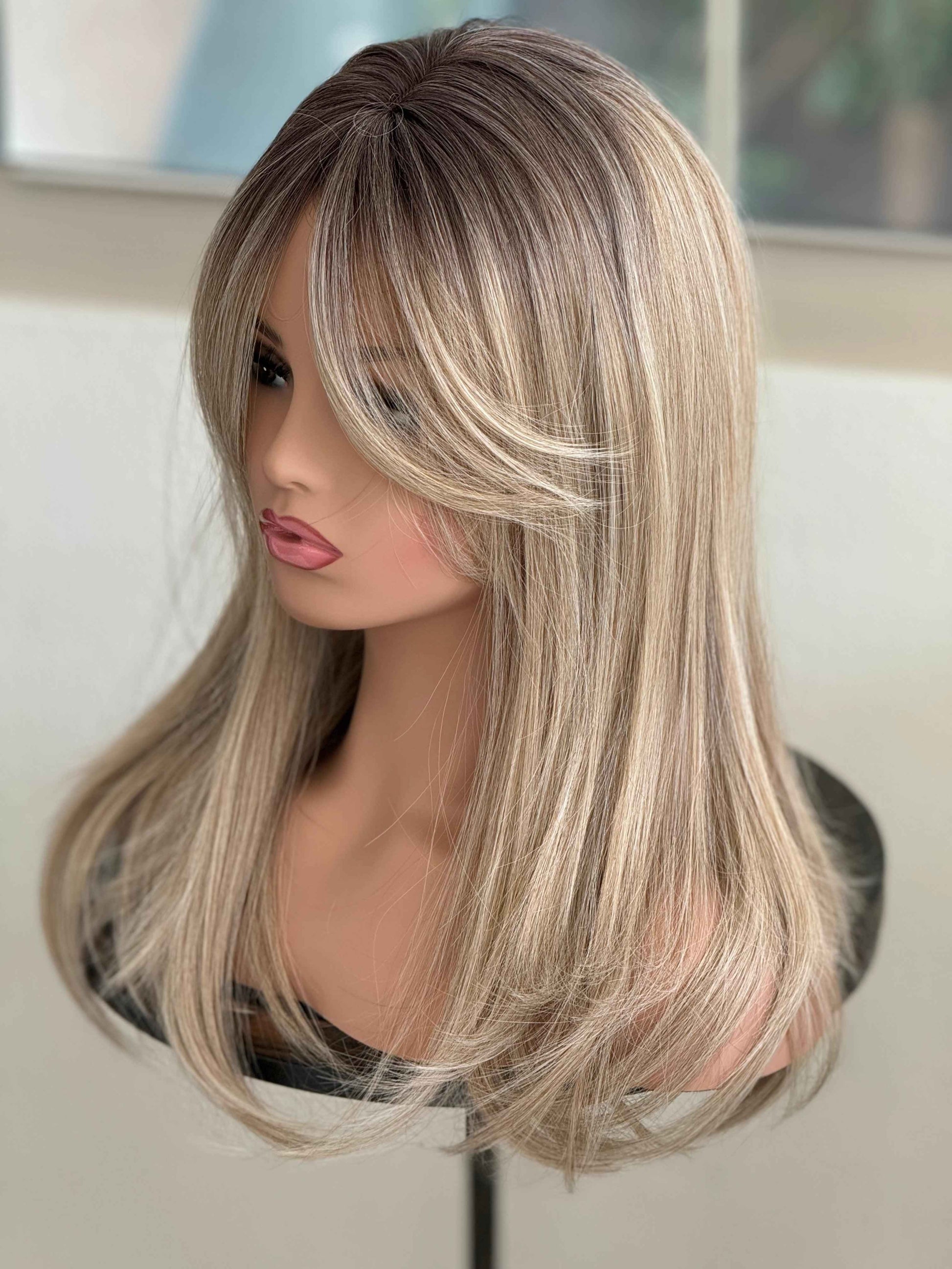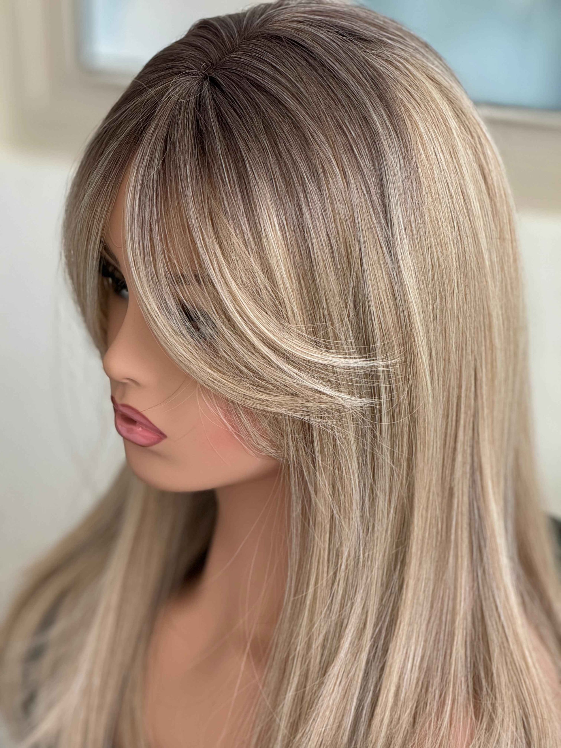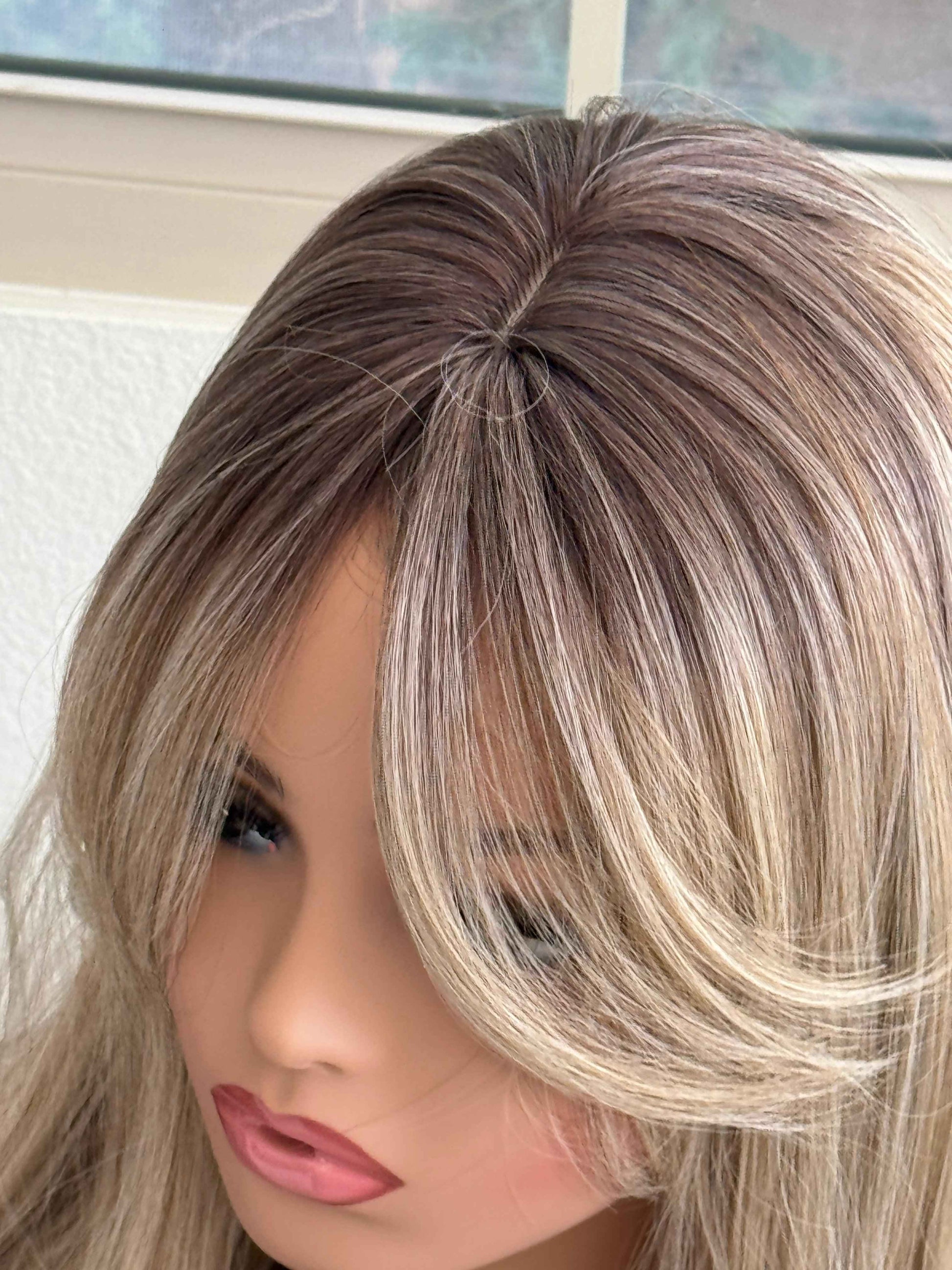 Tillstyle blonde with ombre brown roots hair toppers with bangs
