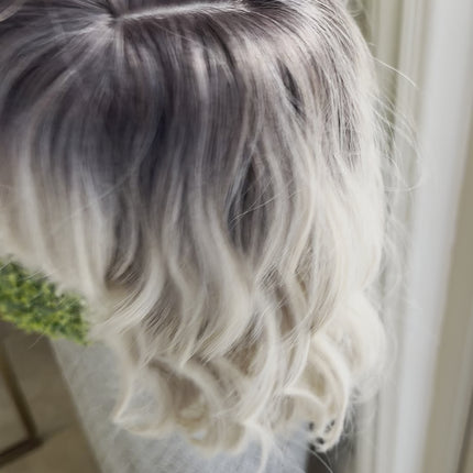 Tillstyle platinum blonde ombre  wig loose body wave air bangs shoulder length wig for women