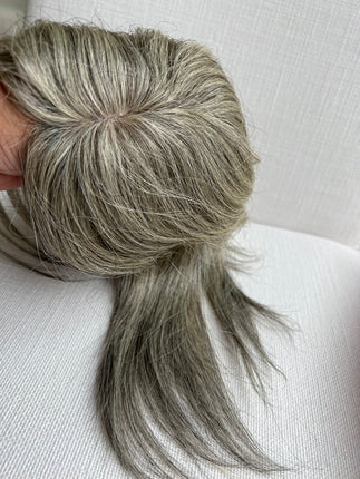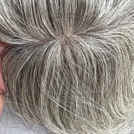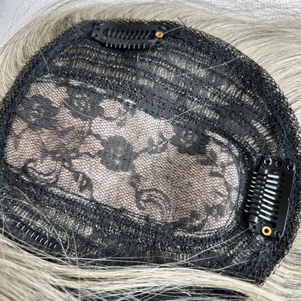 Tillstyle human hairTopper salt and pepper thinning crown clip in hair topper hair piece