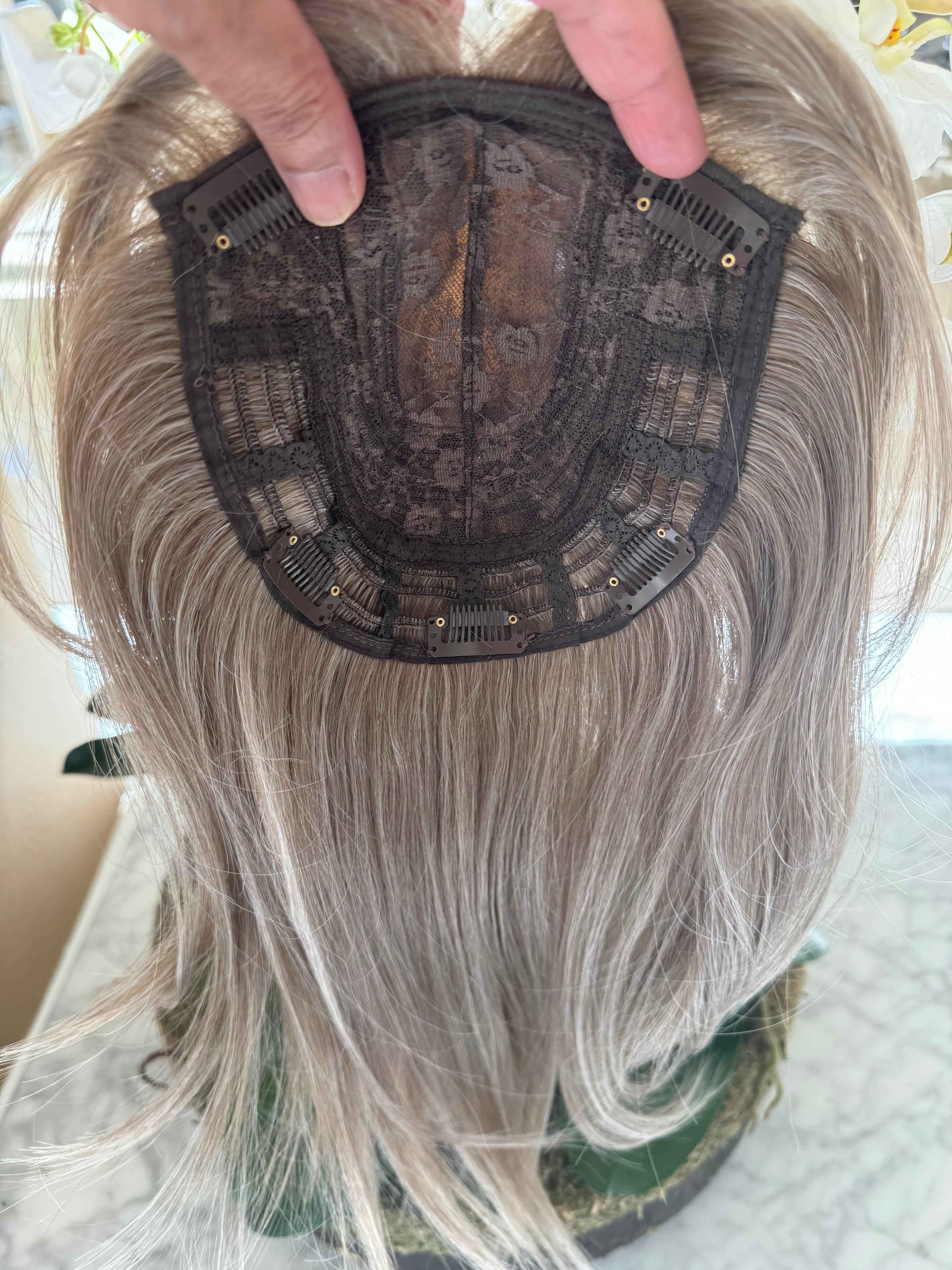 Our human hair topper is perfect for anyone looking to add volume and thickness to their hair, or those who want to cover up any thinning spots. The natural-looking light blonde mix shade is incredibly versatile and will complement any skin tone.
