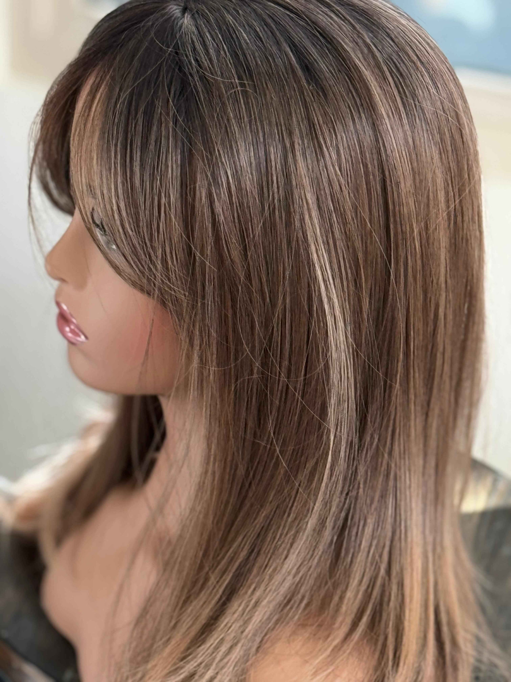tillstyle ombre brown hair topper for women with butterfly bangs for women long hair 16 inch 5x5 base premium synthetic fibre like human hair toppers designed for women with hair loss gives volume to thinning crown experiencing widening crown. Made with the finest quality synthetic fibre like human hair, this topper features a stunning blonde brown mix that looks incredibly natural and will blend seamlessly with your own hair.